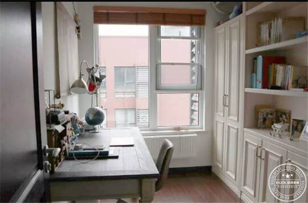 這是一個獨立的書房,工作學習的時候可以安靜的思考。里面的書桌和書柜都是獨立的,超大的書柜空間讓書都有了自己地盤。