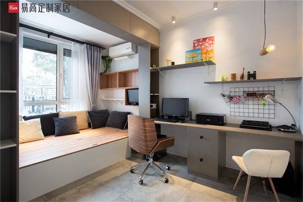小戶型的臥室空間基本上也不會(huì)很大,可以充分利用臥室的轉(zhuǎn)角和死角定制衣柜,提高空間的利用率。如果有飄窗,可以利用飄窗設(shè)計(jì)定制收納柜,提高臥室的儲(chǔ)物能力,還可以擴(kuò)大臥室的空間,同時(shí)還可以作為休憩的小角落。如果還需要更多的收納需求,可以考慮一下榻榻米設(shè)計(jì)。