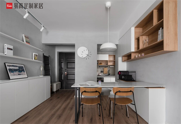 減少小戶型空間的笨重感,可以盡量減少家具的占地面積,選擇定制家具的時候要選擇細腳和輕體量的家具,讓整體家居給人一種清爽簡單的感覺。細腳的家具比大型的家具更顯得輕盈利落,讓空間看起來更加利落干凈,也有拔高感。因此多使用細腳和輕體量的家具,為小戶型家居減少重量感。