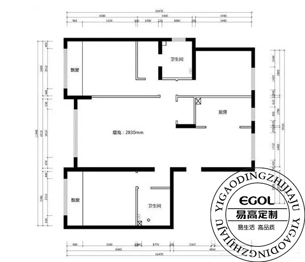 本案為高層住宅,套內面積113㎡,原戶型為三室兩廳兩衛。