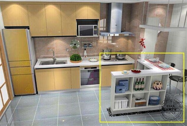 當廚房只有一盞吸頂燈時,人站立在下面往往是背光,這時候在吊柜下設(shè)計一個感應式led燈就非常有必要了。