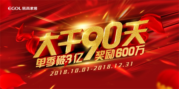 “大干90天”,絕不是一句空談的口號!2018年的四分之三已經(jīng)過去了,四季度我們將努力拼搏,用行動來踐行,為年終沖刺,決勝2018,創(chuàng)造屬于易高家居的新紀(jì)錄。