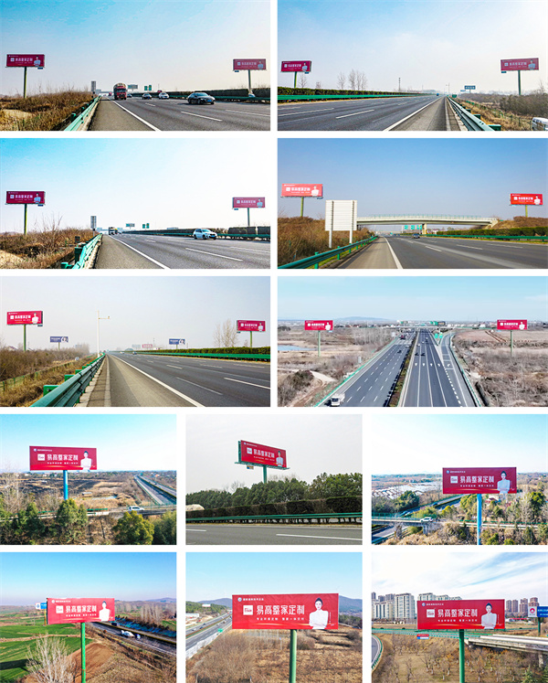 廣告牌在高速核心路段、高鐵站及機場等地形成多維視覺聯(lián)動,通過全天候展示,精準(zhǔn)對話中高端消費人群,高效傳達品牌實力,盡顯定制家居標(biāo)桿品牌風(fēng)范。