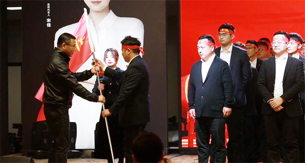 戰(zhàn)鼓催征,易高家居董事長孔慶松為全體戰(zhàn)士親授戰(zhàn)旗,現(xiàn)場士氣高漲。臨行前,易高鐵軍喝下壯行酒,并以鏗鏘有力的誓詞宣告對任務(wù)目標的完美執(zhí)行,彰顯出使命必達的決心!