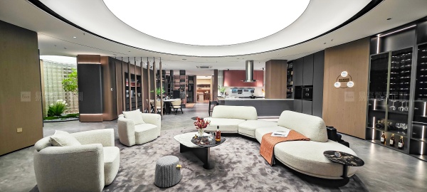 借鑒意式建筑的拱形線條美學,以極簡大氣的圓弧造型進行整體鋪陳,形成親切的天然違和感,促進空間與人的親密互動,提升整體視覺層次感和設計張力。