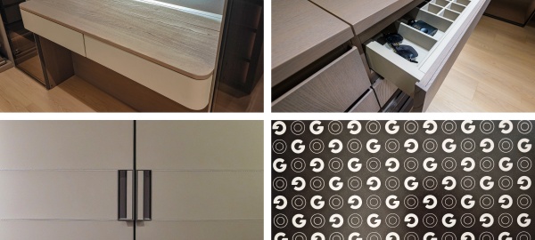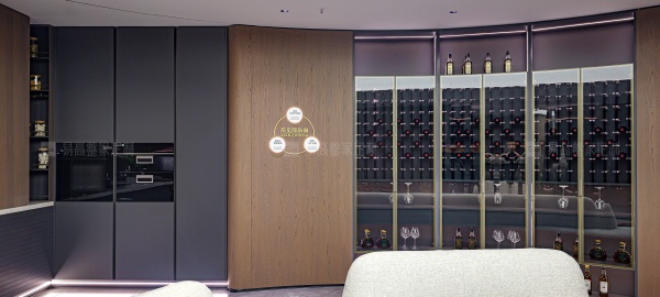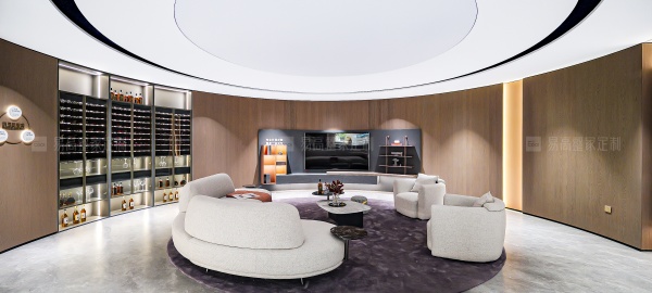開放式壁掛系統與個性logo背板形成較大的視覺沖擊力,呈現獨一無二的奢雅質感。玻璃、皮質、金屬元素融合柔光氛圍,每個角落都散發慵懶高級感。